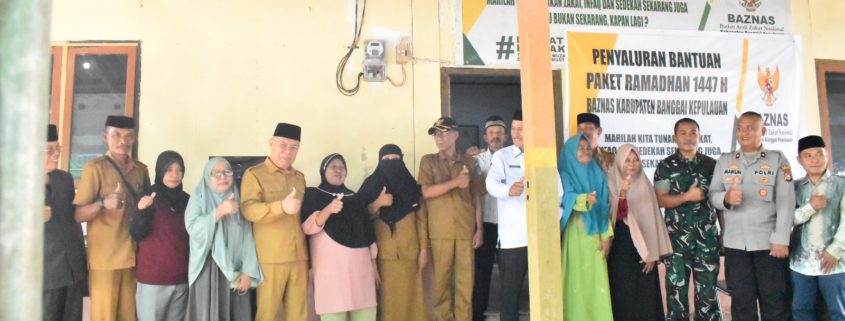 Salakan, BanggaiKep.go.id – Badan Amil Zakat Nasional (BAZNAS) Kabupaten Banggai Kepulauan menyalurkan bantuan sembako kepada masyarakat dalam rangka menyemarakkan Bulan Suci Ramadhan 1447 Hijriah dihadiri unsur pemerintah daerah, pimpinan instansi vertikal, serta berbagai elemen masyarakat, Selasa (10/03/2026).