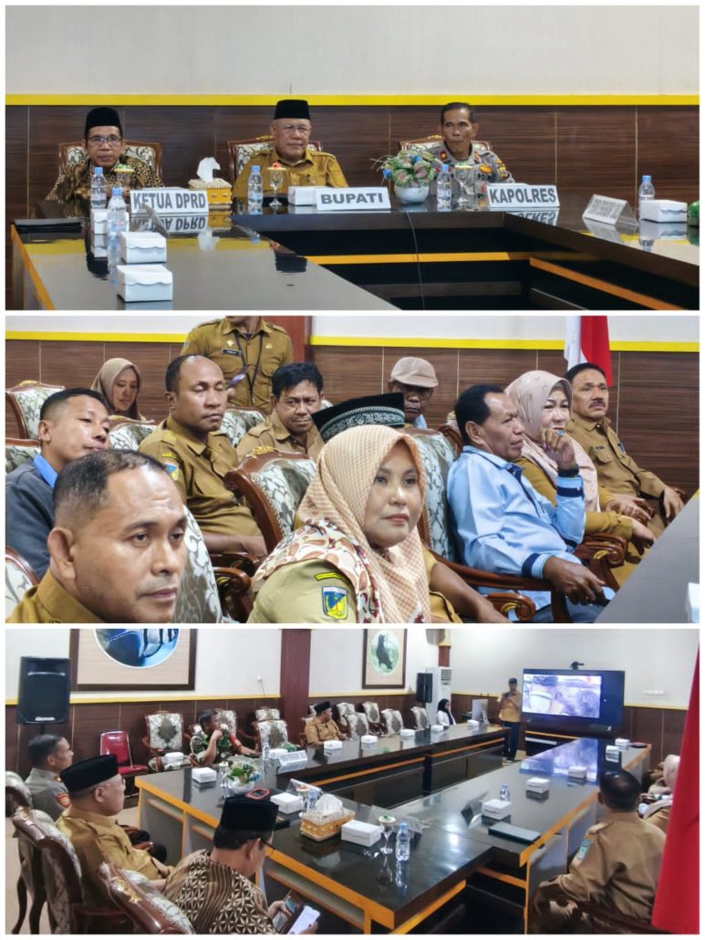 Salakan, BanggaiKep.go.id – Bupati Banggai Kepulauan Rusli Moidady di dampingi Pj. Sekda Suripto Nurdin, Wakil Ketua II DPRD Suhardin Sabalino, Wakapolres Bangkep Kompol Abidin, Danramil Tinangkung diwakili oleh Serma Ahmad Djamila, OPD terkait, Kades dan Pengurus KOPDES Merah Putih di wilayah Kec. Tinangkung hadiri Kegiatan Peluncuran Kelembagaan 80.000 Koperasi Desa/Kelurahan Merah Putih oleh Presiden Republik Indonesia Prabowo Subianto secara serentak di seluruh wilayah Indonesia, Senin (21/07/2025).