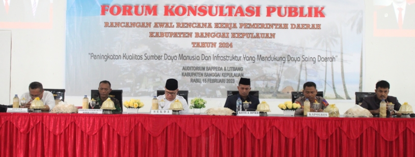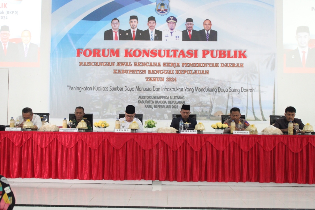 Melalui Forum Konsultasi Publik ini kita menjaring aspirasi para pemangku kepentingan, yang akan dibahas bersama Kepala Perangkat Daerah untuk Rancangan RKPD Kabupaten Banggai Kepulauan tahun 2024 dengan tujuan untuk memperoleh masukan dan saran terhadap prioritas dan sasaran pembangunan tahun 2024.