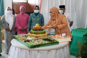 Selanjutnya, kegiatan ini diakhiri dengan pemotongan tumpeng oleh Ketua DWP Bangkep dan menyanyikan lagu Mars Dharma Wanita Persatuan serta pengumuman pemenang lomba Pidato yang telah diadakan terlebih dahulu.