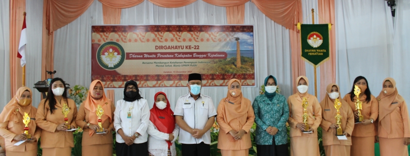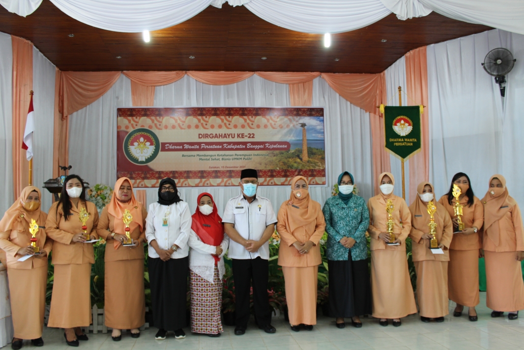 Salakan, BanggaiKep.go.id – Bertempat di Gedung Balai Pertemuan Umum Kecamatan Tinangkung Kabupaten Banggai Kepulauan (Bangkep), Bupati yang diwakili oleh Sekertaris Daerah Rusli Moidady, ST.,MT mengikuti perayaan Hari Ulang Tahun (HUT) Dharma Wanita Persatuan (DWP) ke-22 dengan tema “Bersama Membangun Ketahanan Perempuan Indonesia Mental Sehat, Bisnis UMKM Pulih”, Rabu, (15/12/2021).