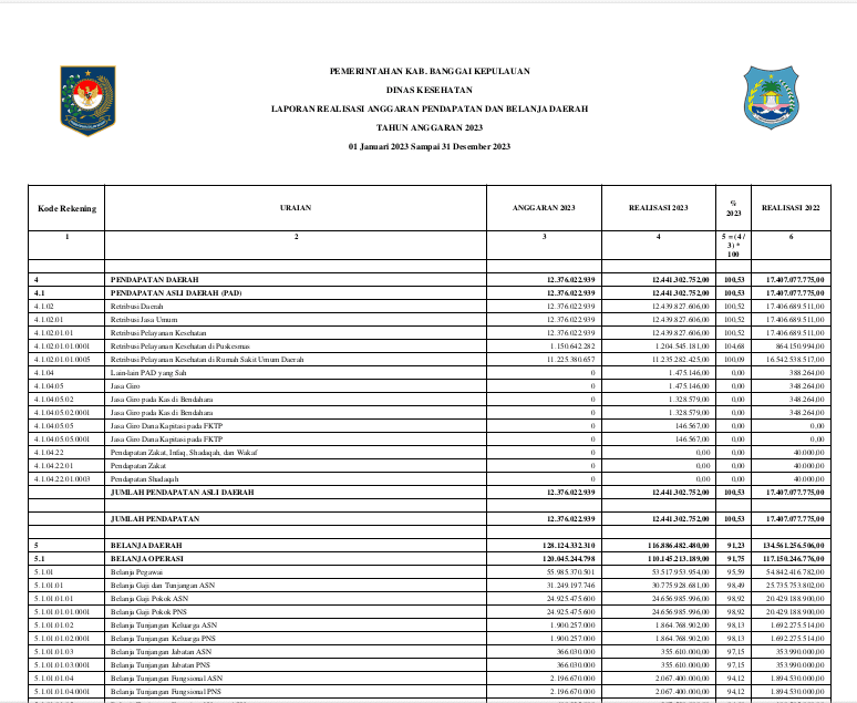 Informasi Laporan Realisasi Anggaran Seluruh SKPD-DINKES T.A 2023