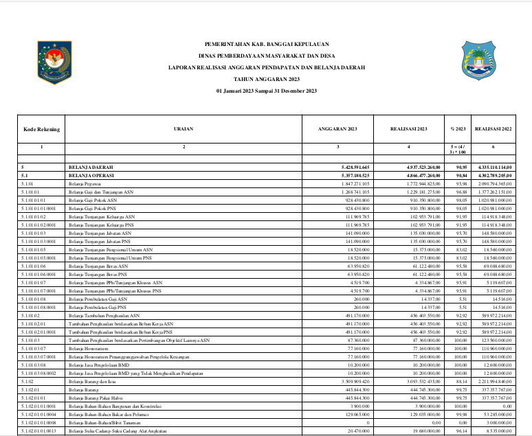 Informasi Laporan Realisasi Anggaran Seluruh SKPD-DPMD T.A 2023