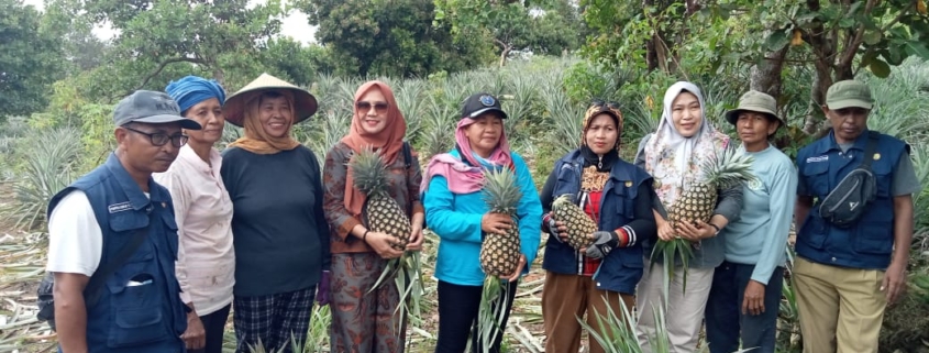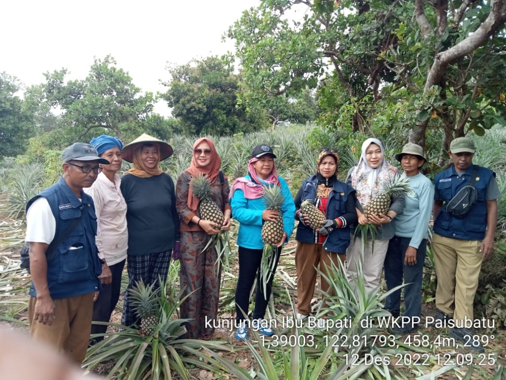 Paisubatu, BanggaiKep.go.id – Ketua Tim Penggerak PKK Kabupaten Banggai Kepulauan Dr. Wahyuningsih, SE.,M.Sc bersama warga masyarakat Desa Paisubatu lakukan Panen Buah Nenas.