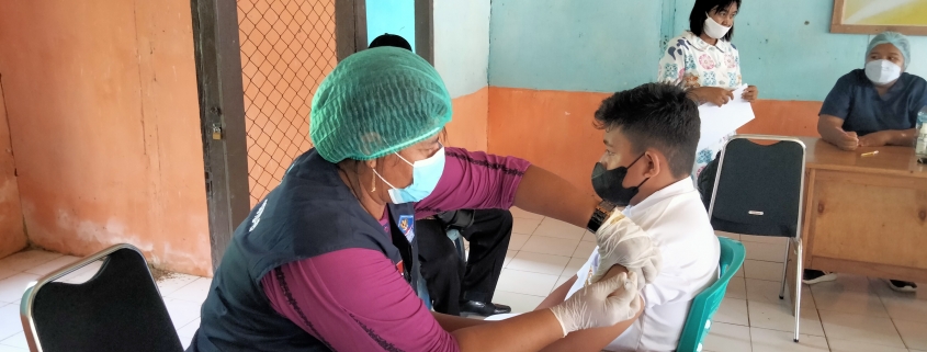 Malanggong, BanggaiKep.go.id – Guna mencapai target vaksinasi di Wilayah Kabupaten Banggai Kepulauan terlebih khusus di wilayah Kecamatan Buko, Satgas Covid-19 Kecamatan Buko bersama dengan tim teknis Puskesmas Tataba Kecamatan Buko terus bersinergi bersama melaksanakan pelayanan vaksinasi ke desa-desa melalui kegiatan vaksin mobile.