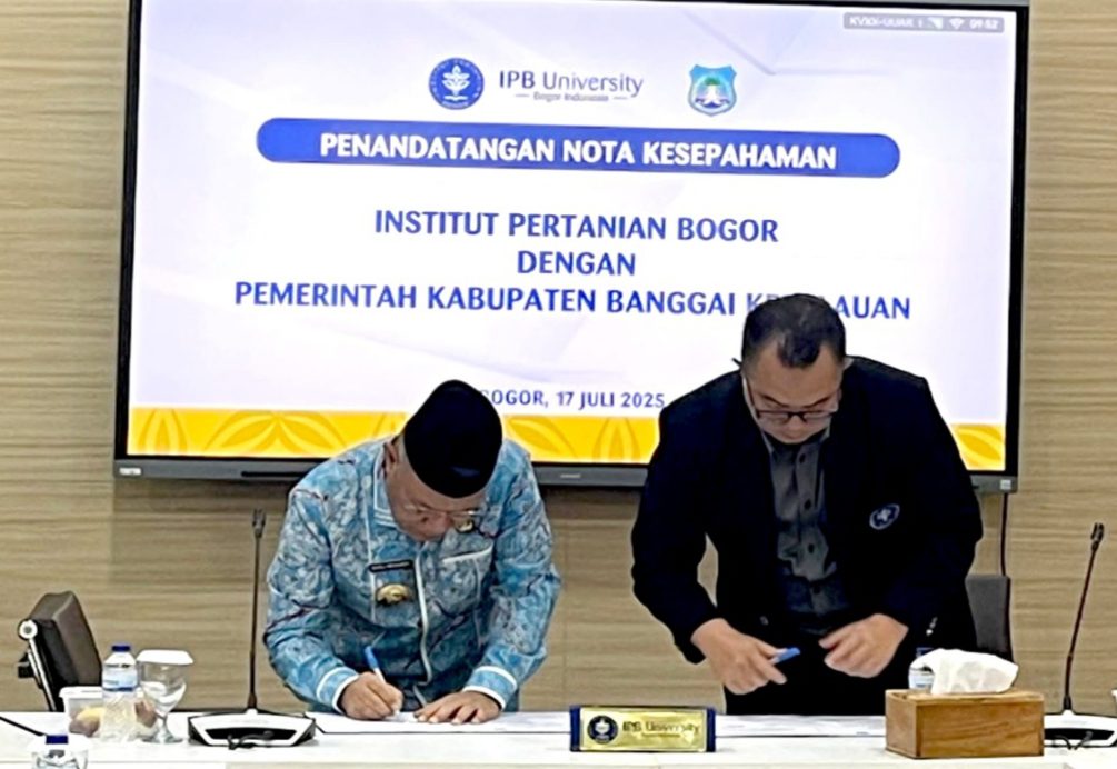 Bogor, Banggaikep.go.id – Dalam upaya memperkuat pembangunan sektor pertanian dan peningkatan kualitas sumber daya manusia, Pemerintah Kabupaten Banggai Kepulauan resmi menjalin kerja sama dengan Institut Pertanian Bogor (IPB). Hal ini ditandai dengan penandatanganan Nota Kesepahaman (MoU) antara kedua pihak yang berlangsung di Kampus IPB Bogor, Kamis (17/07/2025).