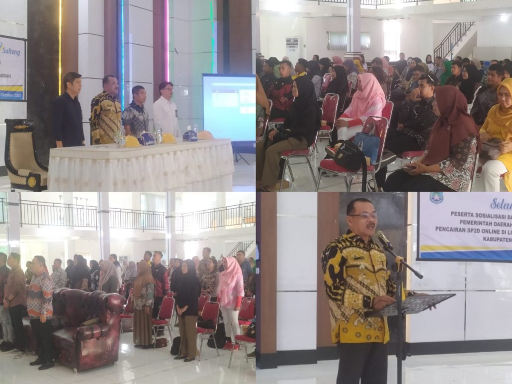 Salakan, BanggaiKep.go.id – Pemerintah Kabupaten Banggai Kepulauan laksanakan kegiatan Sosialisasi dan Pelatihan Penggunaan SP2D Online dalam Sistem Informasi Pemerintah Daerah (SIPD) sebagai langkah strategis dalam meningkatkan pemahaman dan keterampilan aparatur pengelola keuangan daerah terhadap penggunaan aplikasi SP2D Online, Kamis (16/10/2025).