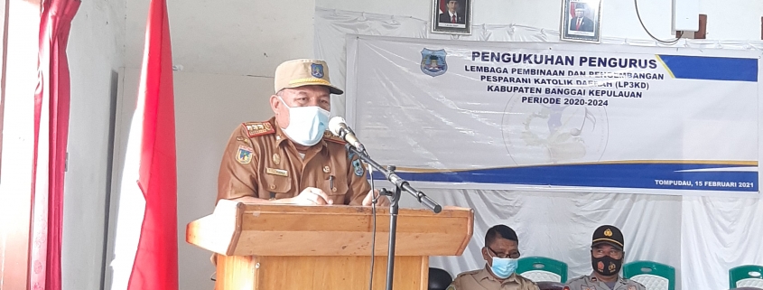 Salakan, BanggaiKep.go.id – Pengukuhan Pengurus Lembaga Pembinaan dan Pengembangan Pesparani Katolik Daerah (LP3KD) Kabupaten Banggai Kepulauan (BanggaiKep) Periode 2020-2024 oleh Sekretaris Daerah Rusli Moidady, ST., MT berjalan lancar dan aman dengan memperhatikan protokol kesehatan, Senin, (15/02/2021).