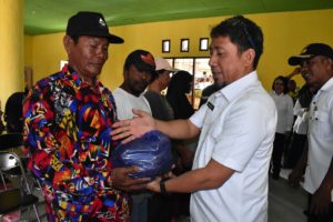 Setiap keluarga menerima bantuan pangan berupa minyak goreng, gula pasir, beras, ubi Banggai, talas dan telur.