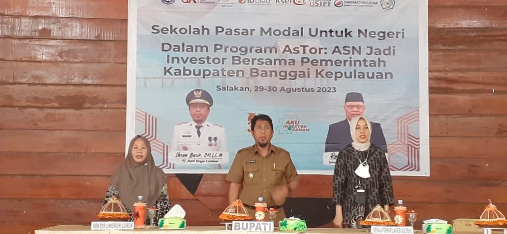 Salakan, BanggaiKep go.id – Pj. Bupati Banggai Kepulauan Ihsan Basir buka secara resmi kegiatan Sekolah Pasar Modal untuk Negeri dalam Program AsTor : ASN Jadi Investor bersama Pemerintah Kab. Banggai Kepulauan (Bangkep), Selasa, (29/8/2023).