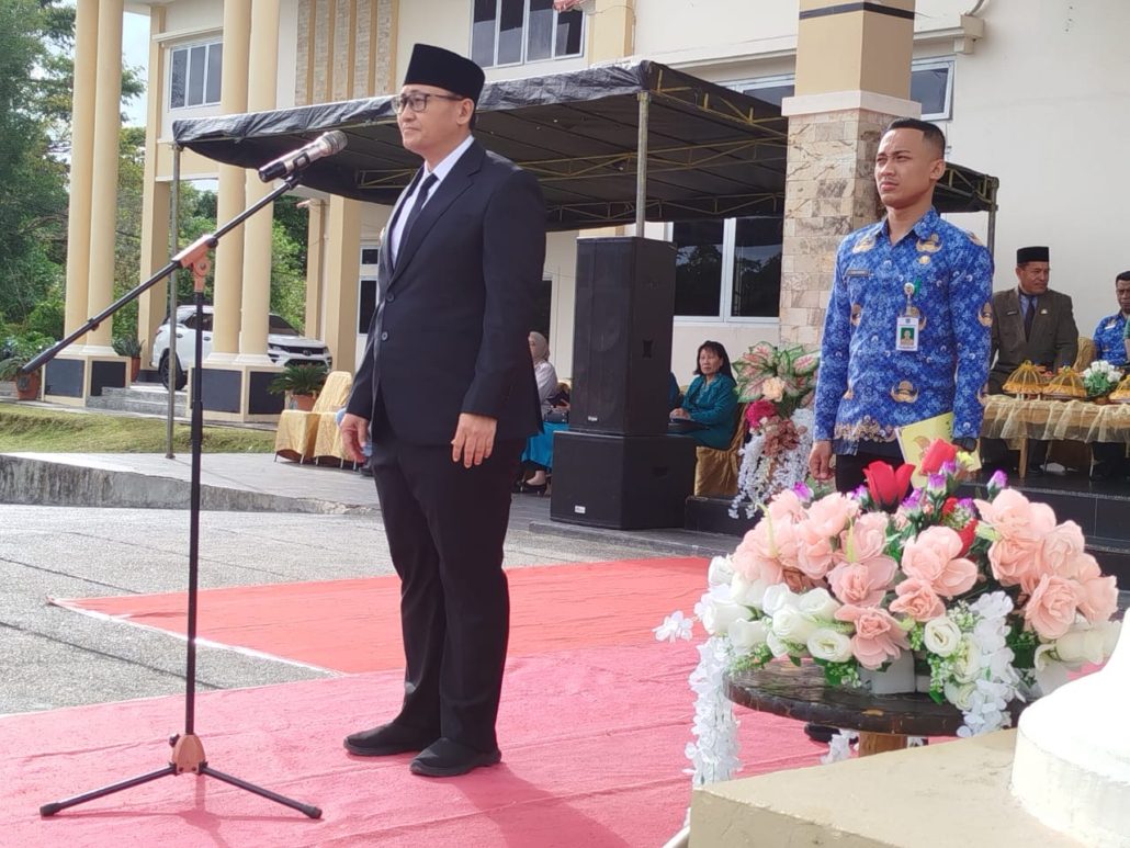 Rangkaian upacara berlangsung khidmat dengan pengibaran bendera Merah Putih oleh petugas dari Pol-PP, diiringi lagu Indonesia Raya dan diikuti dengan pembacaan teks Pancasila dan UUD 1945. Sambutan penting dibacakan oleh Wakil Bupati yang menyampaikan pesan Menteri Koperasi RI, menegaskan peran strategis koperasi dalam mewujudkan ekonomi yang adil dan makmur serta pentingnya koperasi desa/kelurahan Merah Putih sebagai pilar pembangunan ekonomi rakyat.