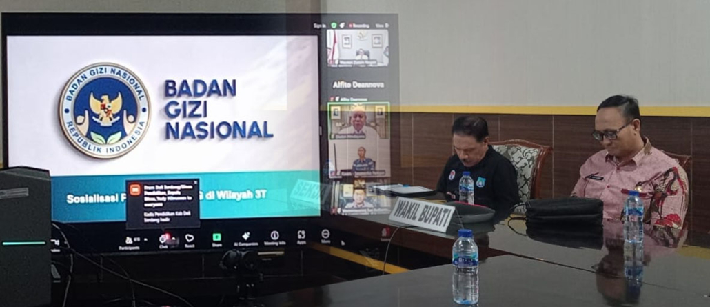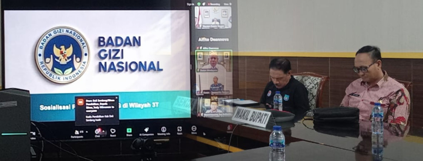 Agenda Sosialiasi Pemantapan Program makan bergizi gratis yang dilaksanakan secara virtual Zoom Meeting, dihadiri oleh Pj. Sekretaris Daerah Suripto Nurdin, S.Sos., Kepala Dinas Pendidikan dan Kebudayaan Ikhsan Nursin, S.Pd., MM, Kepala Bidang Kesehatan Masyarakat (Kesmas) Dinas Kesehatan, serta staf Dinkes Banggai Kepulauan.